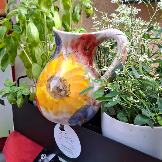 Keramik Karaffe ( H. 18 cm.ca. 1.25 lt. ) Design Mix Flower - Handarbeit aus Italien