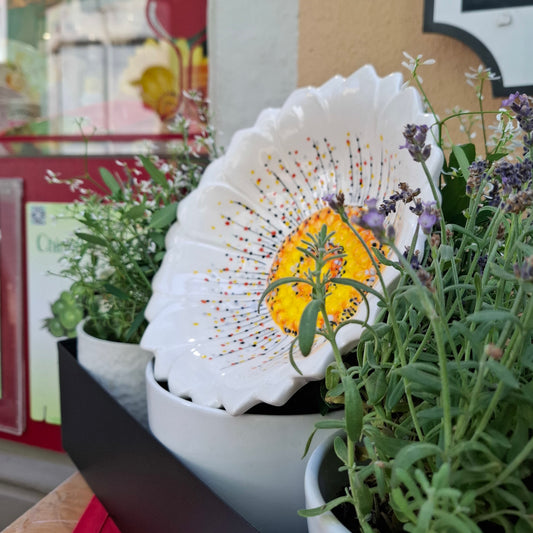 Keramikteller - Margherita - Farbton Bianco/Weiß , mit Gelb,Orange, Graue & Schwarze Pünkte Handarbeit aus Italien