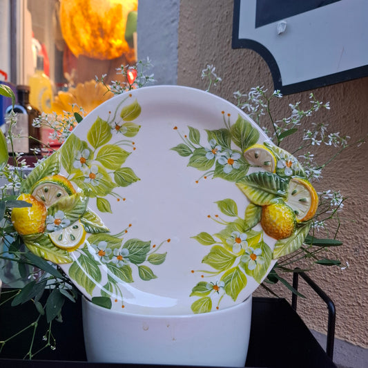 Keramikteller - "Oval Zitrusblüten & Limoni " ( L. ca. 26 cm. B ca 21 cm. )Handarbeit aus Italien