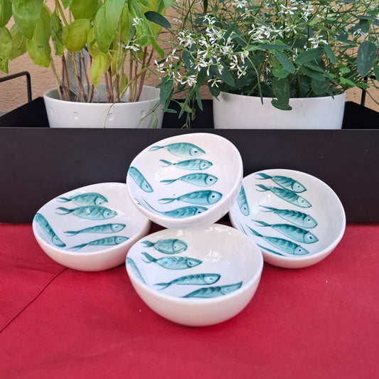 Keramikset - 4 er Schalen Design Pesciolini Farbe Verdemare ( B. ca. cm 11 H ca. cm. 4,5 ) - Handarbeit aus Italien