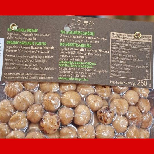 Die Königin der Haselnuss: Nocciola Piemontese IGP delle Langhe - Varietá Tonda Gentile Trilobata Geröstet & Gluten Free 250 gr. Altalanga Alba CN Italy