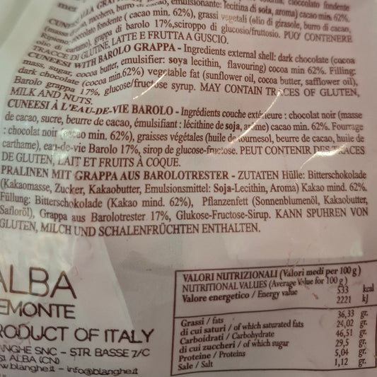 Cuneesi Grappa Barolo "Praline mit GrappaBarolo Schokocreemefüllung - 200 gr. Beutel