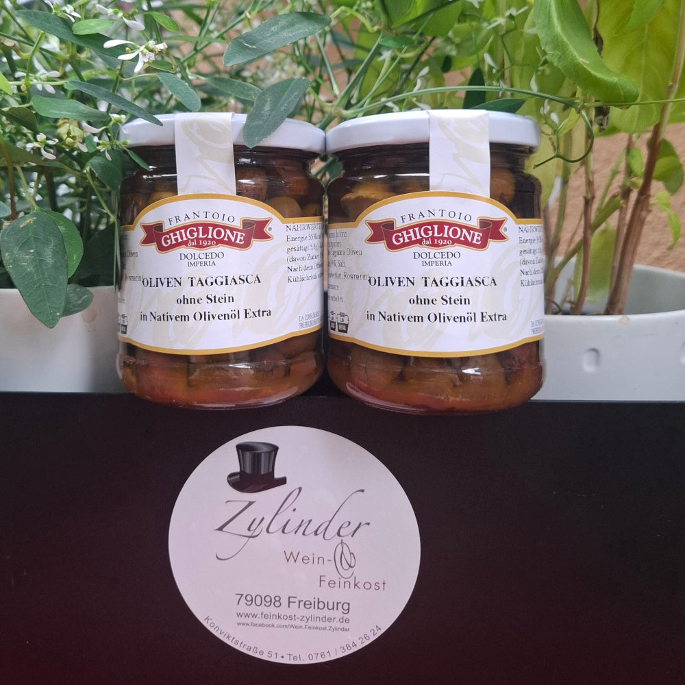 OLIVEN TAGGIASCHE - Ohne Stein in Olivenöl - Frantoio Ghiglione 2er Glas ANGEBOT